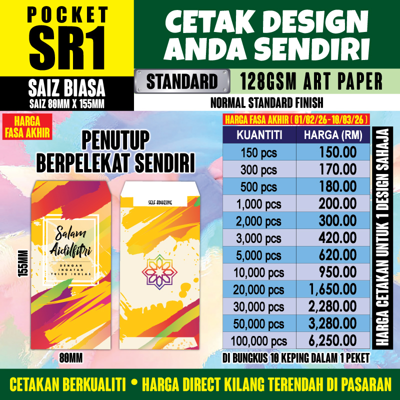 Senarai Harga Sampul POCKET SR1