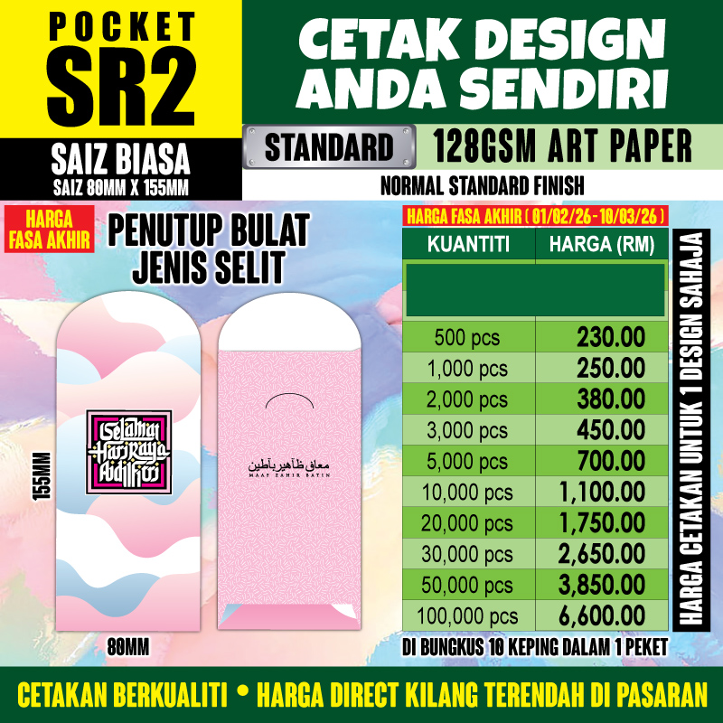 Senarai Harga Sampul POCKET SR2