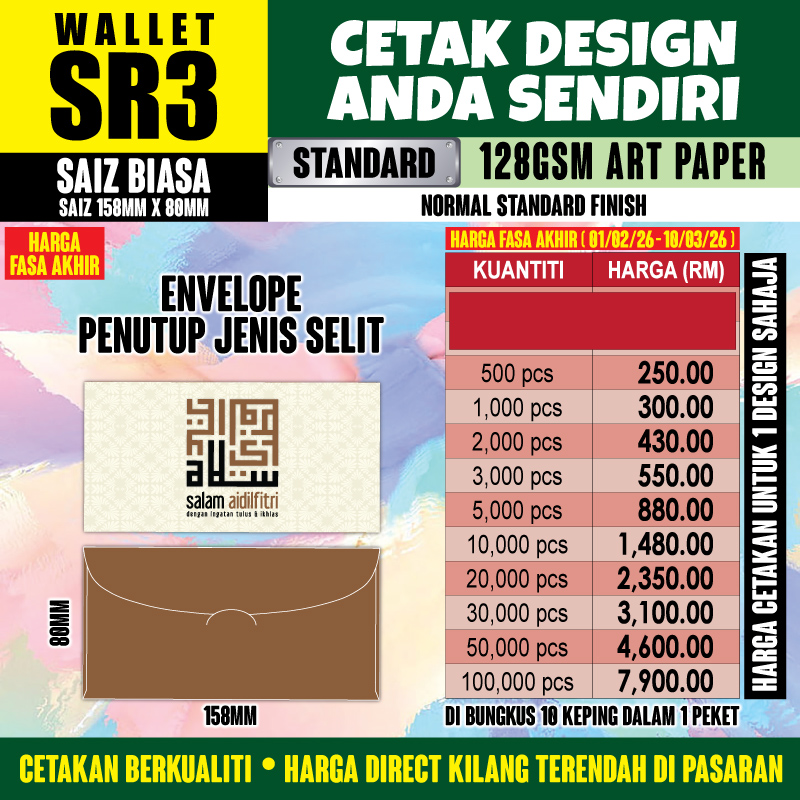 Senarai Harga Sampul WALLET SR3