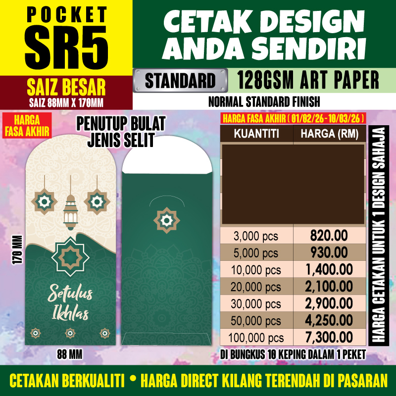 Senarai Harga Sampul POCKET SR5 (PALING BESAR)
