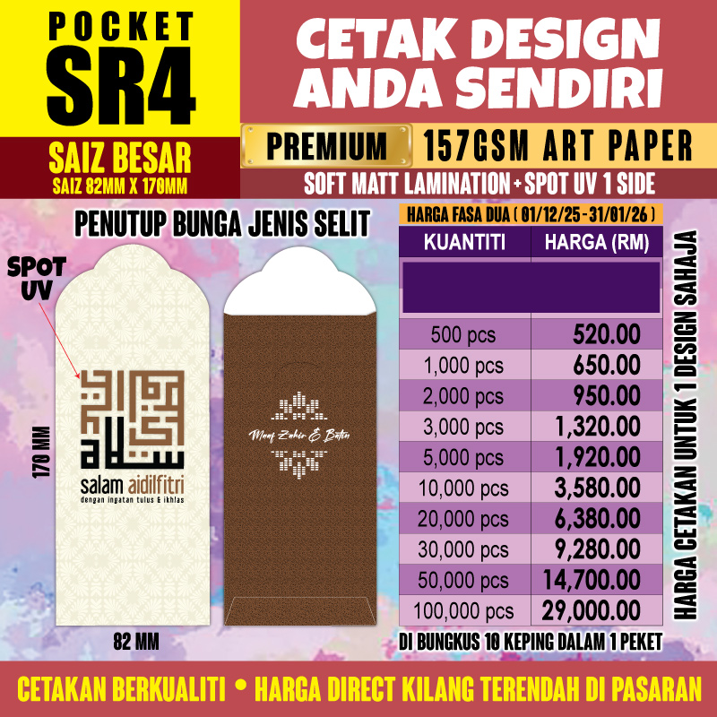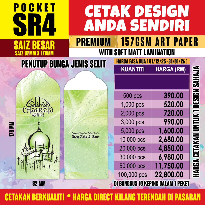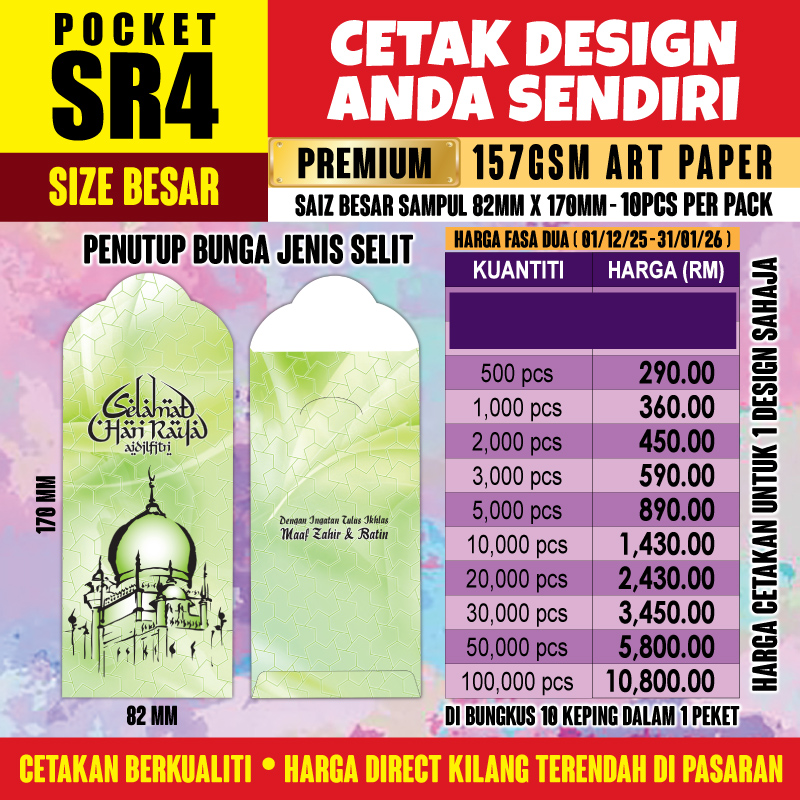 Senarai Harga Sampul POCKET SR4 (BESAR)
